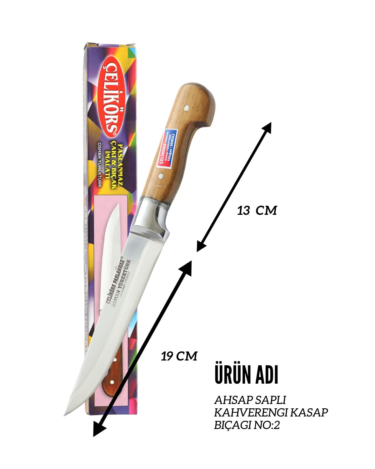 Hisar Bıçak Ahşap Saplı Kahverengi Kasap Bıçağı No:3